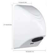 This small-sized hand dryer features a powerful air motor that delivers quick hand drying in just seconds while maintaining low energy consumption. Its infrared sensor technology ensures completely touch-free operation, promoting better hygiene and convenience for every user.
