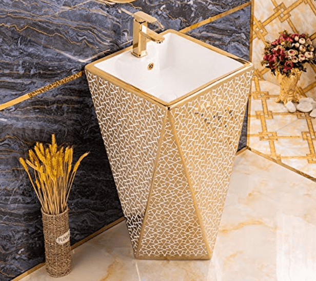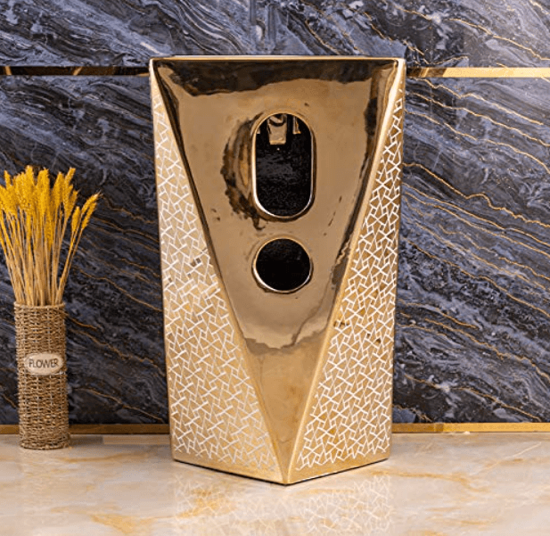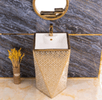 The stylish gold and white dual-tone design makes it a perfect fit for luxury bathrooms, hotel washrooms, vanity counters, and premium home interiors. The seamless one-piece construction ensures easy cleaning, stain resistance, and exceptional hygiene.