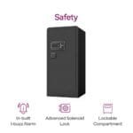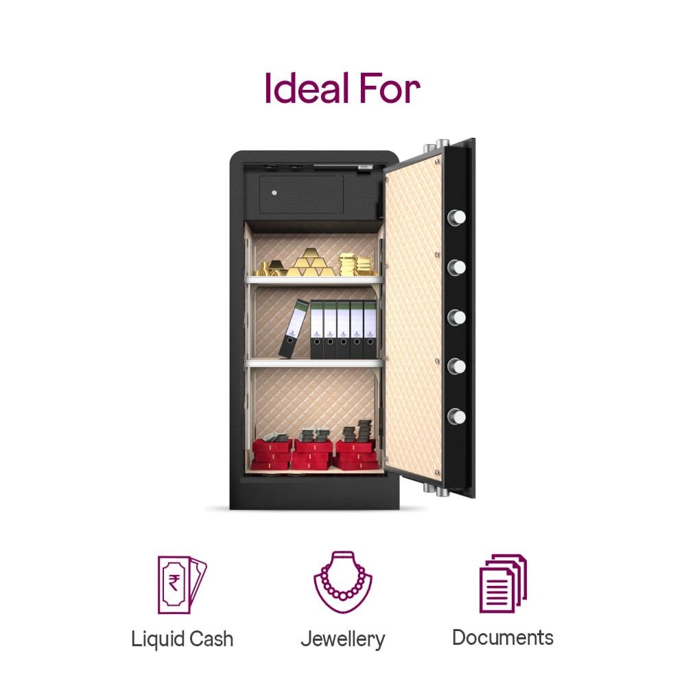 Designed for those who refuse to compromise on safety, this heavy-duty home locker offers triple locking technology: biometric fingerprint access, digital PIN entry, and a mechanical override key for maximum protection. With a massive 560-litre capacity, it’s perfect for safeguarding jewellery, cash, documents, electronics, and valuables in both homes and offices.