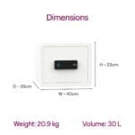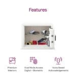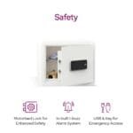 Crafted with precision and powered by biometric fingerprint recognition and advanced digital PIN access, this locker ensures that only you have access to your precious belongings. Its 30-litre capacity provides ample space for jewellery, cash, important documents, and electronic devices, making it ideal for both home and office use.