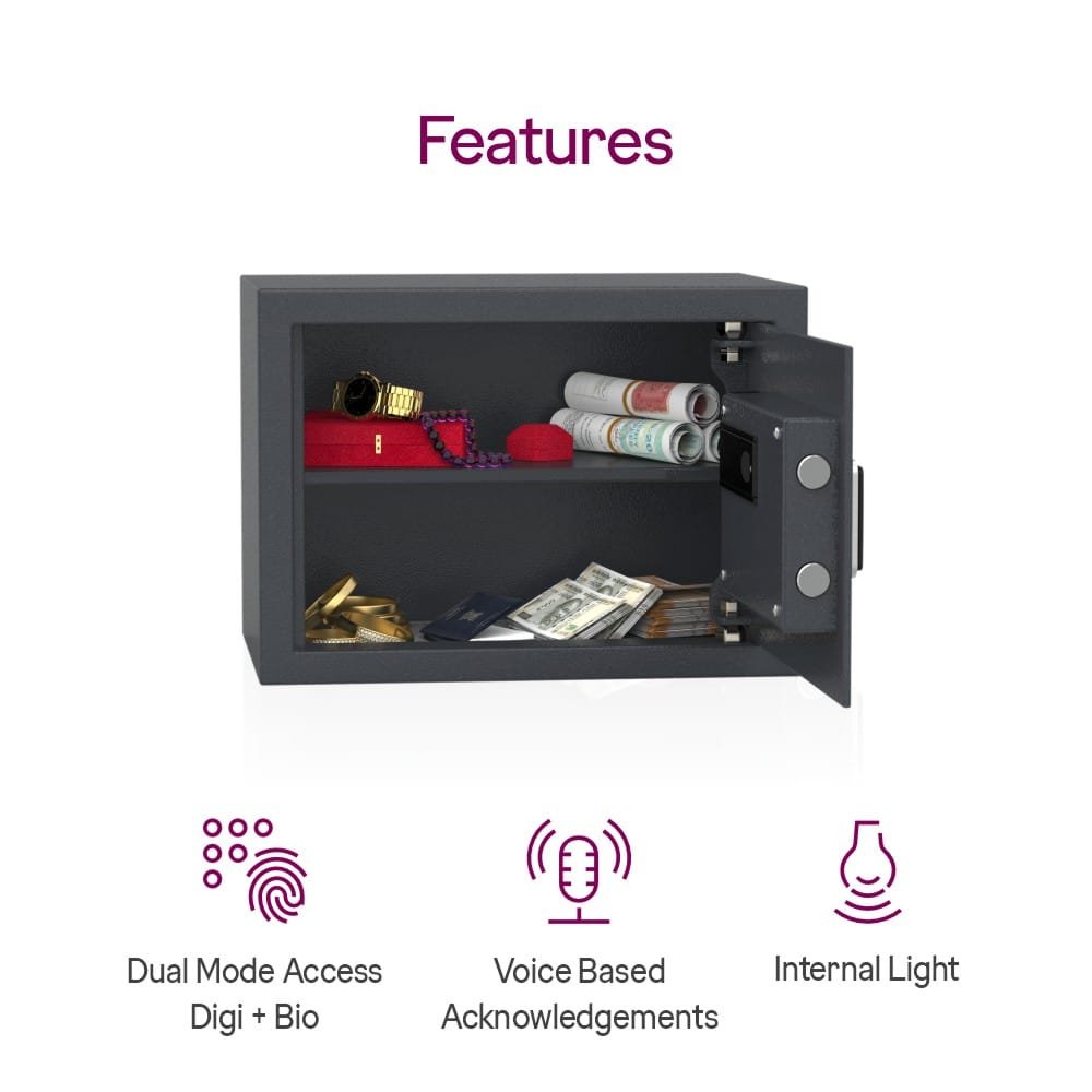 Keep your valuables safe with the Godrej NX Pro Plus Digi+ Bio 15L Home Locker – a compact, biometric digital safe for modern home and office security.