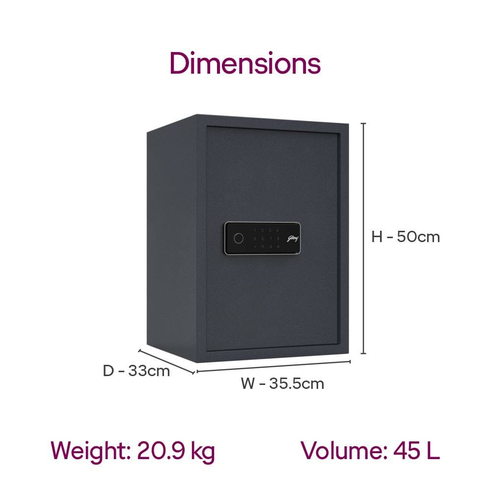 Category: Locker Tags: 45L home safe locker, biometric safe India, digital locker with fingerprint sensor, electronic locker for home, fireproof locker, Godrej digital safe, Godrej home locker, Godrej NX Pro Plus