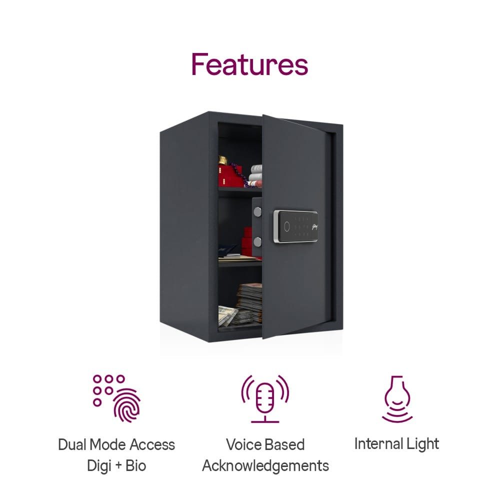 Keep your valuables safe and secure with the Godrej NX Pro Plus Digi+ Bio 45L Home Locker, the perfect blend of smart technology, durability, and elegant design. Crafted by Godrej, India’s most trusted security brand, this premium home locker ensures unbeatable protection with cutting-edge biometric and digital locking technology.