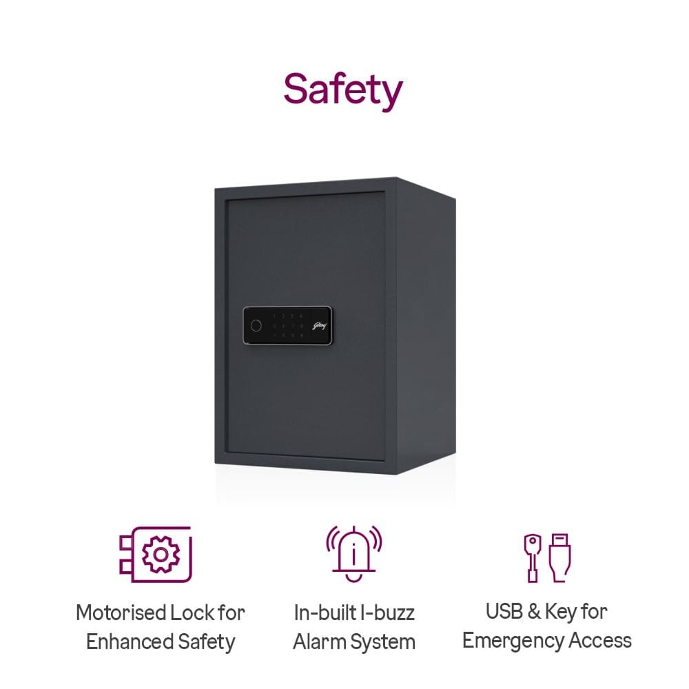 Secure your valuables with the Godrej NX Pro Plus Digi+ Bio 45L Home Locker — a smart, reliable, and stylish safe for modern homes and offices. Equipped with an advanced biometric fingerprint sensor and digital PIN lock, this locker ensures quick, authorized access and maximum security. The solid steel body, 45L spacious capacity, and fire & burglar-resistant design make it ideal for storing jewelry, documents, and cash. With features like a low battery indicator and emergency key access, the Godrej NX Pro Plus offers unbeatable safety with convenience.