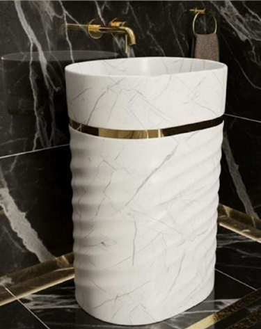 J300 21G Marble Pedestal Wash Basin – Premium Designer Bathroom Basin