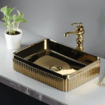 Transform your bathroom into a luxurious space with this Premium Gold Tabletop Wash Basin, designed to deliver both style and sophistication. Crafted from high-grade ceramic and finished in a rich metallic gold coating, this basin instantly elevates the aesthetic of any modern bathroom, vanity, or wash area.