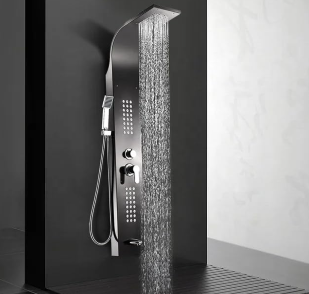 Upgrade your bathing experience with this Waterfall Shower Panel (Black) crafted from premium Stainless Steel Grade 304, ensuring exceptional durability, corrosion resistance, and long-lasting shine. Designed for luxury bathrooms, this shower panel offers 5 powerful water functions including a soothing waterfall flow, high-pressure rainfall shower, body massage jets, hand shower, and mist spray—giving you a complete spa-like experience at home.