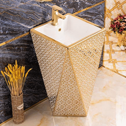 Add luxury to your interiors with the Messina Germany Gold Marble Countertop Wash Basin. Crafted from premium ceramic with a glossy gold marble finish, it combines style, durability, and elegance. Perfect for bathrooms and living rooms, this designer countertop basin enhances any space with its rich look and easy-to-clean surface — ideal for modern and luxury homes.