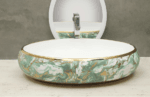 Crafted from high-quality ceramic, this basin features a smooth, glossy white interior and a beautifully patterned exterior that reflects sophistication and style. The durable ceramic material ensures long-lasting performance, scratch resistance, and easy maintenance.