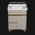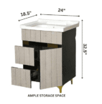 The 24x18x32-inch compact design offers ample storage for toiletries while maintaining a sleek profile. Paired with a stylish, easy-to-clean wash basin, this vanity delivers the perfect combination of functionality, durability, and premium aesthetics. Ideal for homes, hotels, offices, and luxury washrooms.