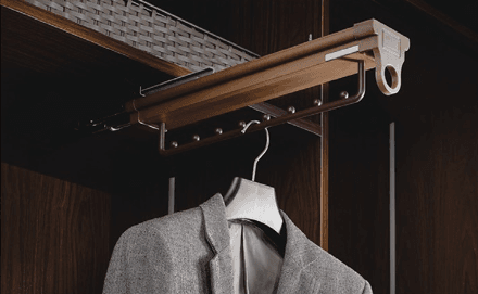 Upgrade your wardrobe with the Top Hanger Pullout, designed to provide maximum convenience and organized storage in modern modular wardrobes. This premium sliding hanger system allows you to hang shirts, trousers, sarees, coats, and accessories neatly, while making them easily accessible with a smooth pullout motion.