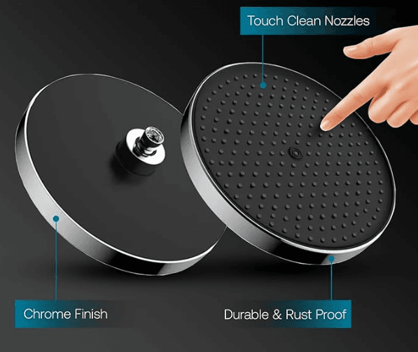 Equipped with anti-clog silicone nozzles, it ensures consistent water flow, prevents scaling, and allows easy cleaning. This round SS shower head is compatible with all standard shower arms, providing a leak-free, smooth water experience that lasts for years.
