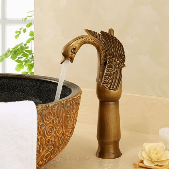 Home Bathroom Fittings Taps Swan Shape Brass High Neck Basin Mixer – Hot & Cold Faucet